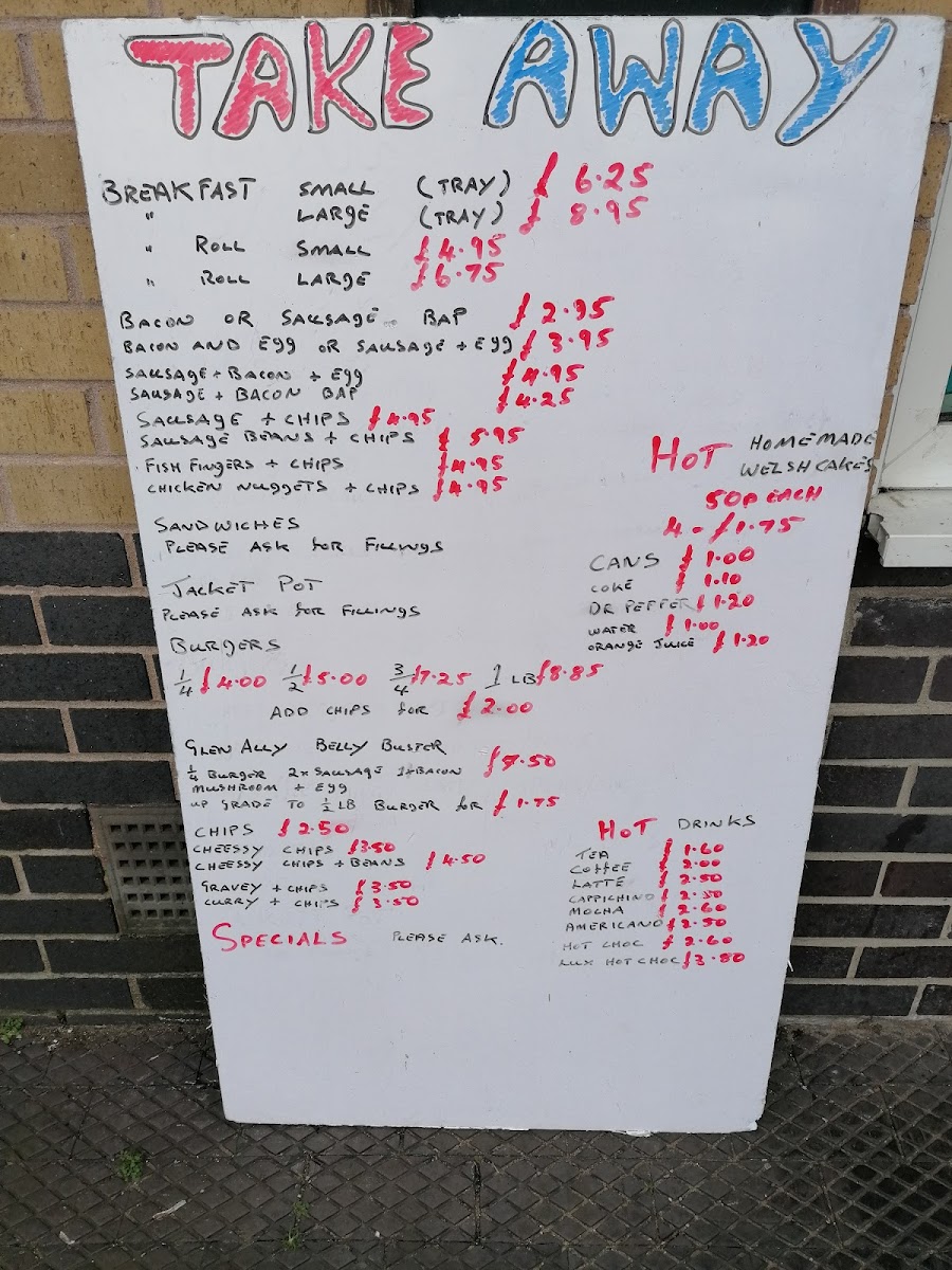 Food offerings typically include classic breakfast items such as English Breakfast and dishes featuring sausage, beans, and chips. The menu also accommodates casual dining needs with a variety of hot meals that provide substantial portions.
